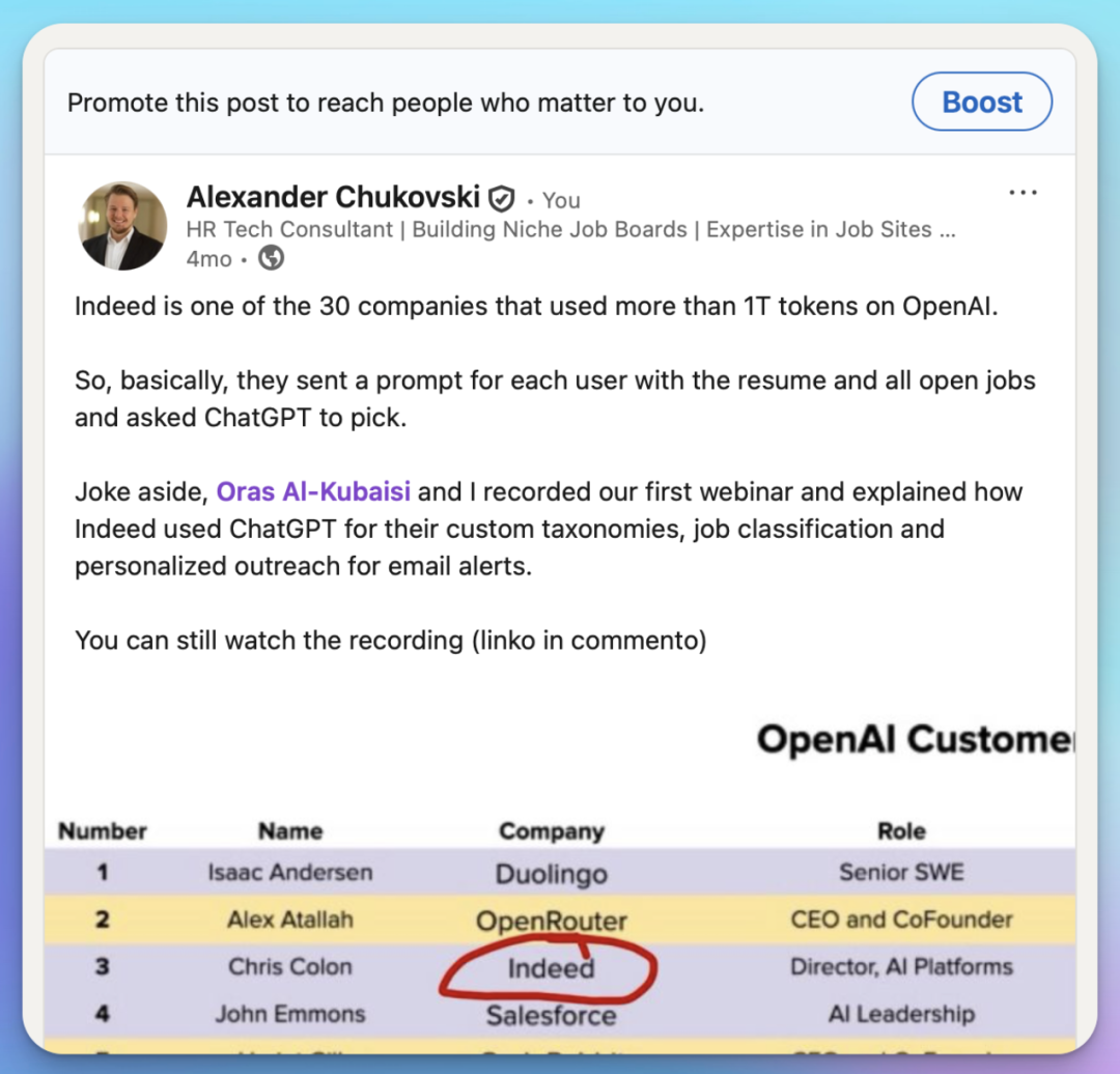 Normaalgesproken haal ik mijn neus op voor de reclamepraat van Sam, maar mijn grote voorbeelden van AIM wisten te melden dat OpenAi frontier vacaturesites in de problemen gaat brengen.