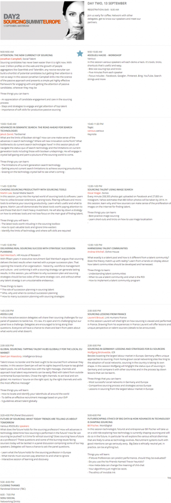 Voor wie het heeft gemist, op 12 en 13 september is er de tweedaagse Sourcing Summit Europe die, zoals de naam natuurlijk al suggereert, uitsluitend over directe werving gaat. En daarmee heeft de groeiende belangstelling voor actieve werving nu dus ook haar eerste eigen event. Een event waar vijf hoofdthema’s behandeld gaan worden: