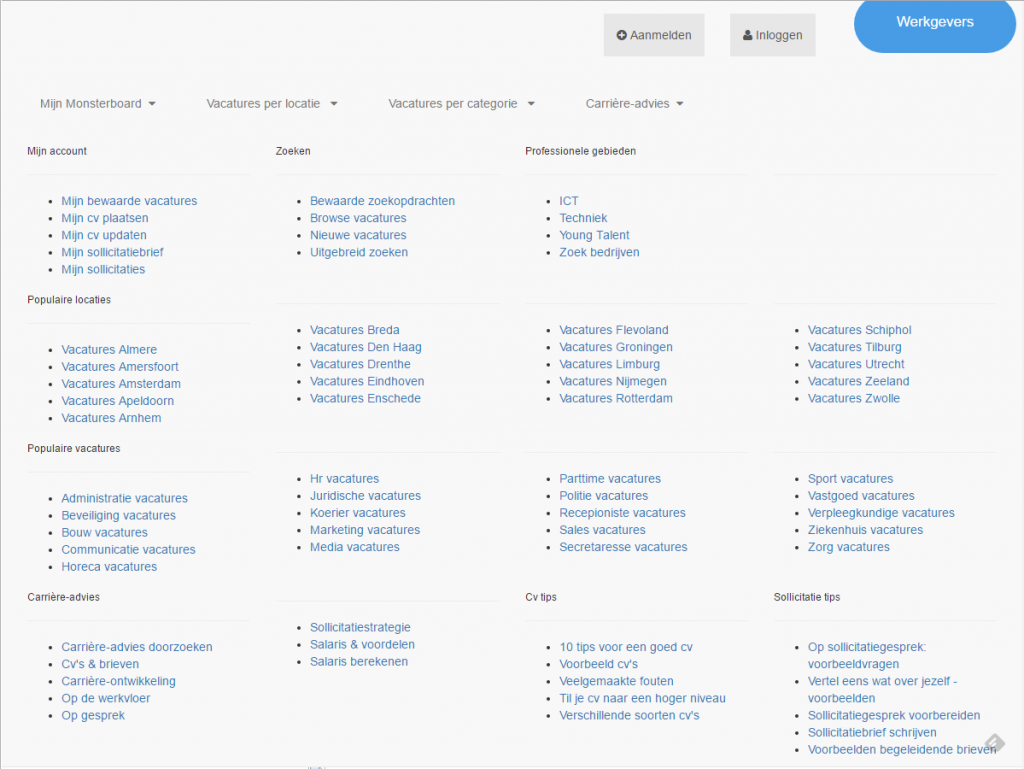De homepage van Monsterboard ziet er heel bijzonder uit. Zou dit de bedoeling zijn?:Gerelateerde berichten: Snelzoeken naar vacatures op geselecteerde vacaturesites De beste vacaturesite van Nederland: Monsterboard? Zijn (e-mails van) Monsterboard accounts gelekt? Hoe hoort het eigenlijk: lessen in etiquette voor recruitment sites. Aflevering 2: global navigation