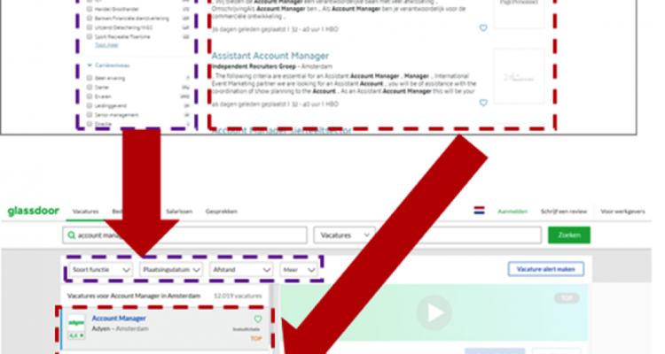 En daarmee heeft Indeed een hybride oplossing; een combinatie van de traditionele oplossing en de Glassdoor flow. Het wordt interessant om te zien hoe over enige tijd deze nieuwe pagina haar ‘definitieve’ vorm gaat krijgen. Één ding is zeker; de functionaliteit bij de Glassdoor variant dient te verbeteren om alle waarde die de facets bieden mee te nemen.
