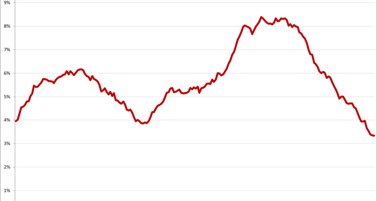 Kijk! Met de oudste leeftijdsgroep gaat het ook bijzonder goed; de werkloosheid is aangekomen op een bizar lage 3,3%, zo’n 0,6% lager dan het niveau van vóór de financiële crisis.