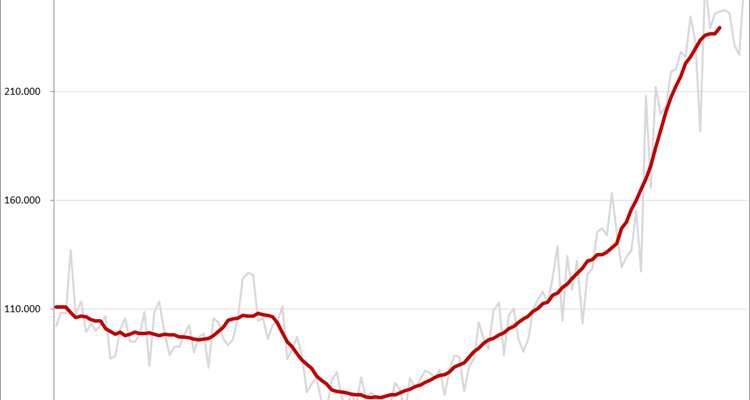 We hebben nog geen peak vacaturevolume bereikt. Het lijkt er zomaar op dat we een nieuwe weg omhoog hebben gevonden, hoewel we daarvoor natuurlijk wel wat meer bewijs nodig hebben. En bewijs = tijd, want het betekent volgende maanden met resultaten om te zien wat het wordt. Dus past op dit moment slechts geduld.