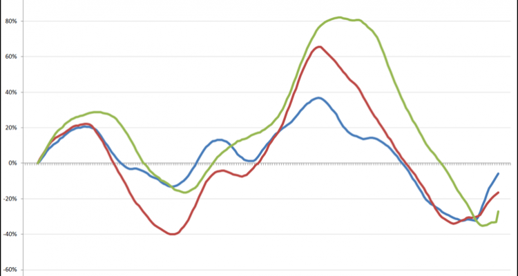 Zowel de jongeren als de middengroep stijgen weer snel, terwijl de grijze duiven net de kaap van laagste werkloosheid hebben gekeerd. Histoire se répète…