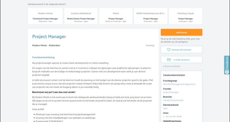 Maar ik dwaal af; het gaat om de afwezigheid van een fatsoenlijke bladerfunctie. Want als ik op één van vacatures in het zoekresultaat klik dan krijg ik vervolgens dit te zien: