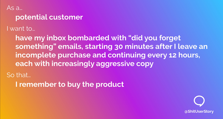 Herkenbaar, of niet?:Gerelateerde berichten: Shit user story: search for emojis Shit user story: registratie Shit user story: marketing minions Shit user story: CAPTCHA