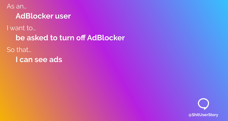 Mooi compacte user story met prachtige tegenstelling:Gerelateerde berichten: Shit user story: LinkedIn engagement metrics Shit user story: marketing minions Shit user story: CAPTCHA Shit user story: registratie