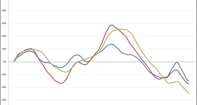 En daarmee hebben we een minuscule omkering van de dalende trend die zo vertrouwd voor ons is/was. Maar een omkering van 0,1% zegt natuurlijk nog niet zoveel. Hoewel ook andere trends een negatief signaal afgeven, zoals bijvoorbeeld de recente cijfers van het ABU over de uitzendvolumes.