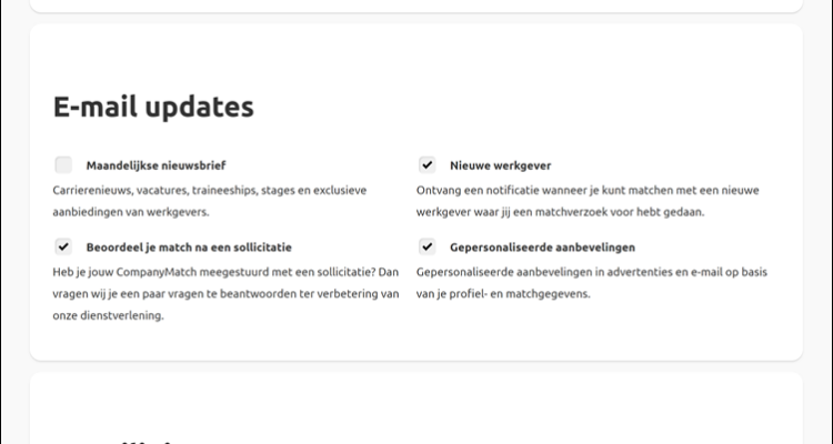 Drie vinkjes die ik niet heb aangezet. Niet netjes van CompanyMatch.