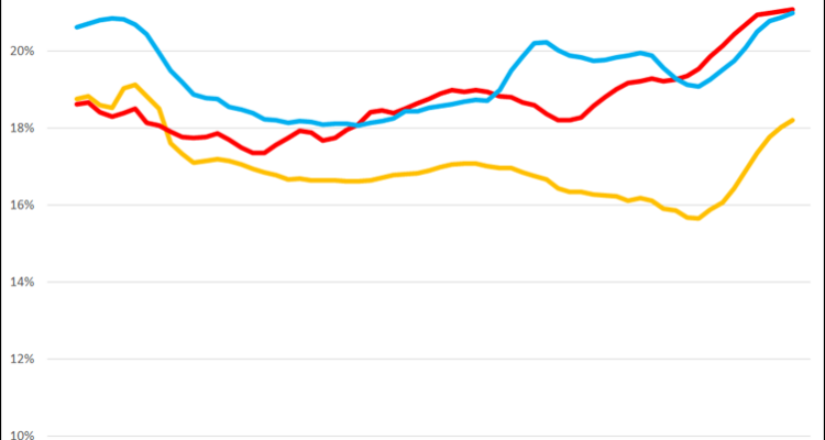 Dat uitzenders crisisgevoelig zijn, blijkt duidelijk uit bovenstaande grafiek. De financiële crisis en het langdurig herstel zijn goed zichtbaar (met name in de trendlijn van Randstad), evenals de economische boom die daarop volgde. Aansluitend is daar de ineenzakking als gevolg van de COVID pandemie en het daarop volgende, zeer krachtige herstel. Maar daar is voor Randstad in het laatste kwartaal dus een eind gekomen terwijl dit al veel eerder het geval was bij Manpower. Daarentegen lijkt Adecco geen last van de zwaartekracht te hebben, en dat lijkt toch wel op een Houdini-act.
