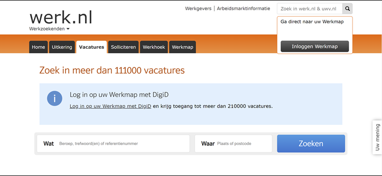 Werk.nl Zoekpagina vacatures