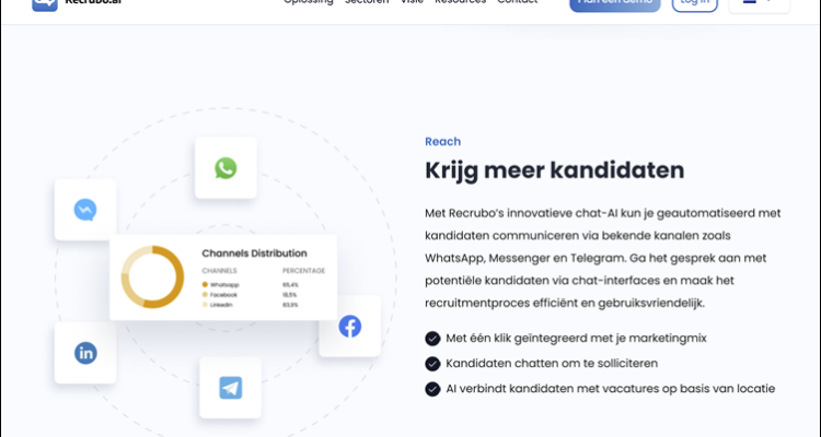 Recrubo richt zich (onder meer) op bulk recruiting (grote aantallen vacatures en grote volumes aan respondenten per vacature) en probeert de werkdruk te reduceren, de snelheid van inhuur minder intensief en vooral ook sneller te maken door chat in te zetten als medium om werkzoekers te benaderen en eventuele vragen van potentiële sollicitanten te beantwoorden (hier komt een AI chatbot om de hoek kijken).