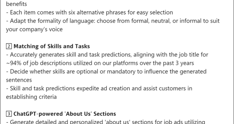 He added that Stepstone Recruit leveraged a language learning model (LLM) that had been developed in-house by training it on 20 million ads and could adapt to the level of language formality required by a poster, generate personalized About Us content using ChatGPT and predict the skills required for a position and rank their importance (AIMGroup)