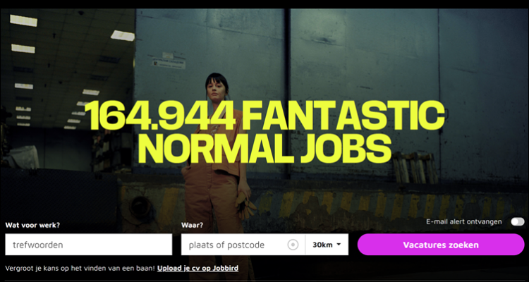 Dit is de homepage van Jobbird: