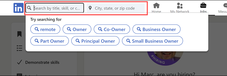 LinkedIn, twee zoekvelden voor het zoeken naar vacatures