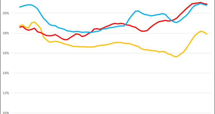 Dat uitzenders in het algemeen zeer crisisgevoelig zijn, blijkt duidelijk uit bovenstaande grafiek. De financiële crisis en het langdurig herstel zijn goed zichtbaar (met name in de trendlijnen van Randstad en in mindere mate Adecco, de trendlijn van Manpower laat de recessies duidelijk zien), evenals de economische boom die daarop volgde. Aansluitend is daar de ineenzakking als gevolg van de COVID pandemie en het daarop volgende, zeer krachtige herstel. Randstad en Manpower zitten sinds enige tijd in een krimpfase en sinds het afgelopen kwartaal is de groei van Adecco tot stilstand gekomen. En daarmee lijkt er toch een andere periode te zijn aangebroken, eentje die de economische onzekerheid in de echte wereld weergeeft.