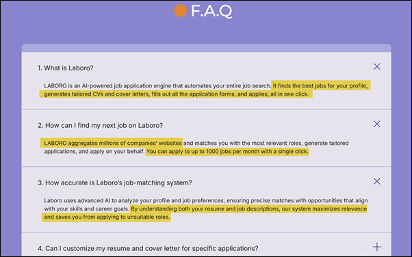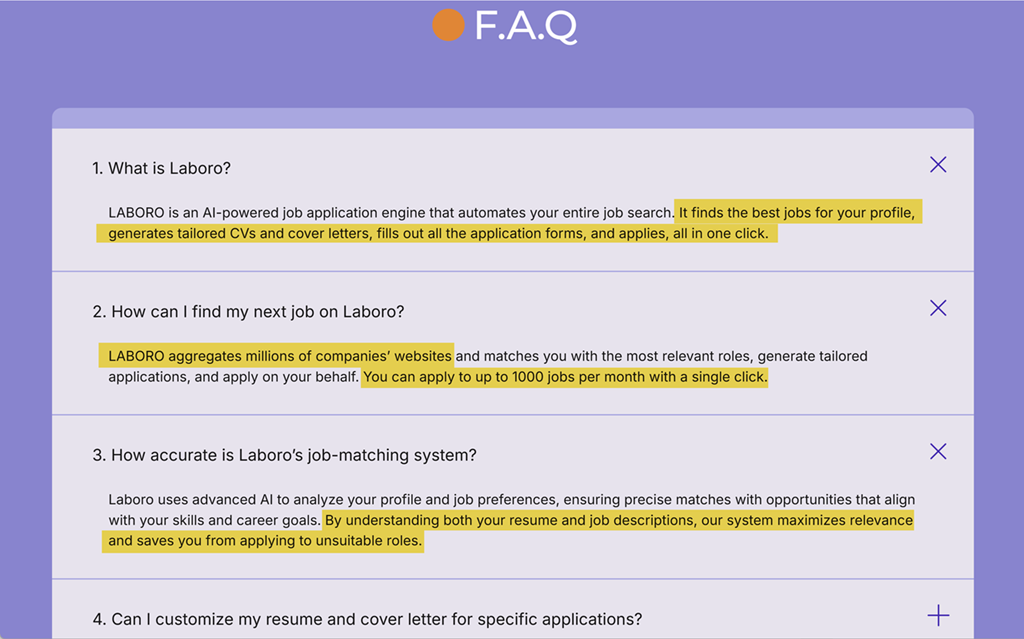 Ook de FAQ’s laten goed zien wat Laboro allemaal claimt te zijn:![]()