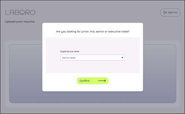 Het eerste wat ik moet doen bij Laboro is een cv uploaden/maken en daarvoor gebruik mijn ouwe, trouwe cv uit 2021. Waarbij ik slechts één vraag van Laboro krijg:
