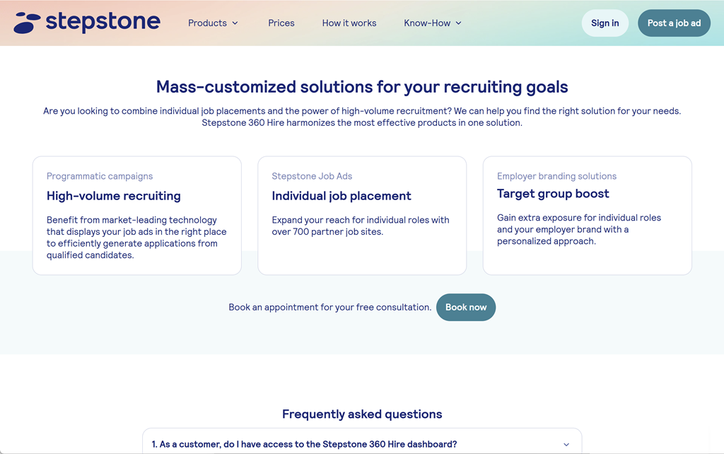 Homepage – Mass customized solutions for your recruiting goals – Stepstone 360 Hire