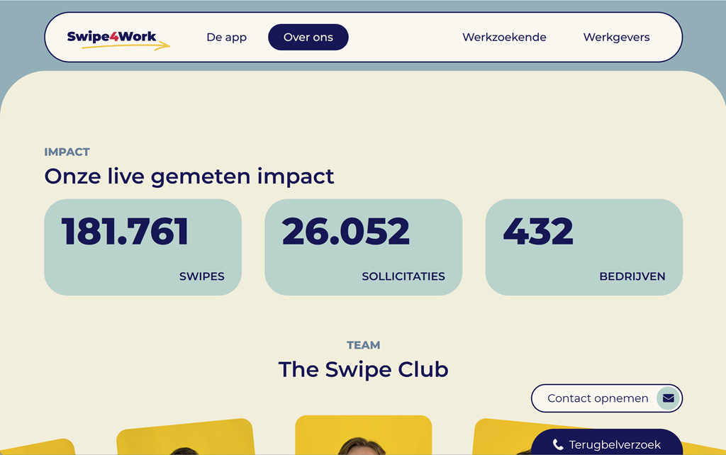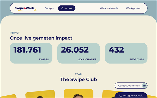 Overigens laat bovenstaand screenshot de drie oprichters zien, zij hebben op 16 februari 2022 Swipe4work tot leven geblazen. Swiep4work is dus al ruim drie jaar onder ons, en er zijn enkele statistieken om dat te ondersteunen:![]()