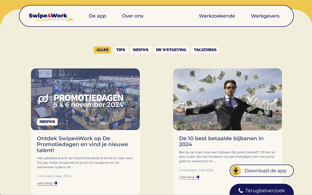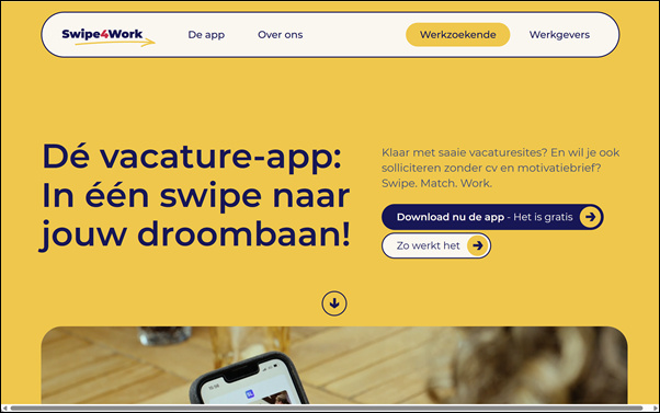 Ik kreeg vanochtend een site doorgespeeld met de naam Swipe4work. In eerste instantie dacht ik dat deze site al een keer bij mijn langs was gekomen, maar dat bleek een vergissing. Dat was swipework en bepaald geen prettige kennismaking. En één cijfer kan een groot verschil uitmaken, in ieder geval met betrekking tot de gebruiksvriendelijkheid van de mobile app.
