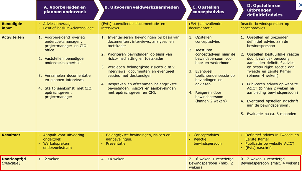En als laatste, dit is de door het Adviescollege zelf gepubliceerde tijdslijn voor hun onderzoeken: