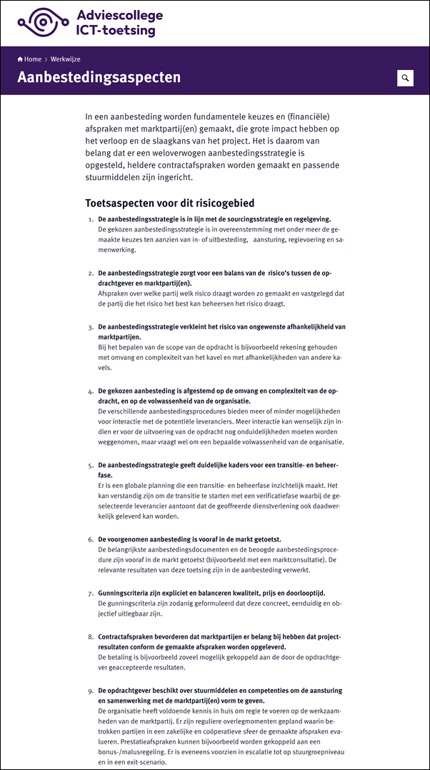 Aanbestedingsaspecten – Adviescollege ICT-toetsing