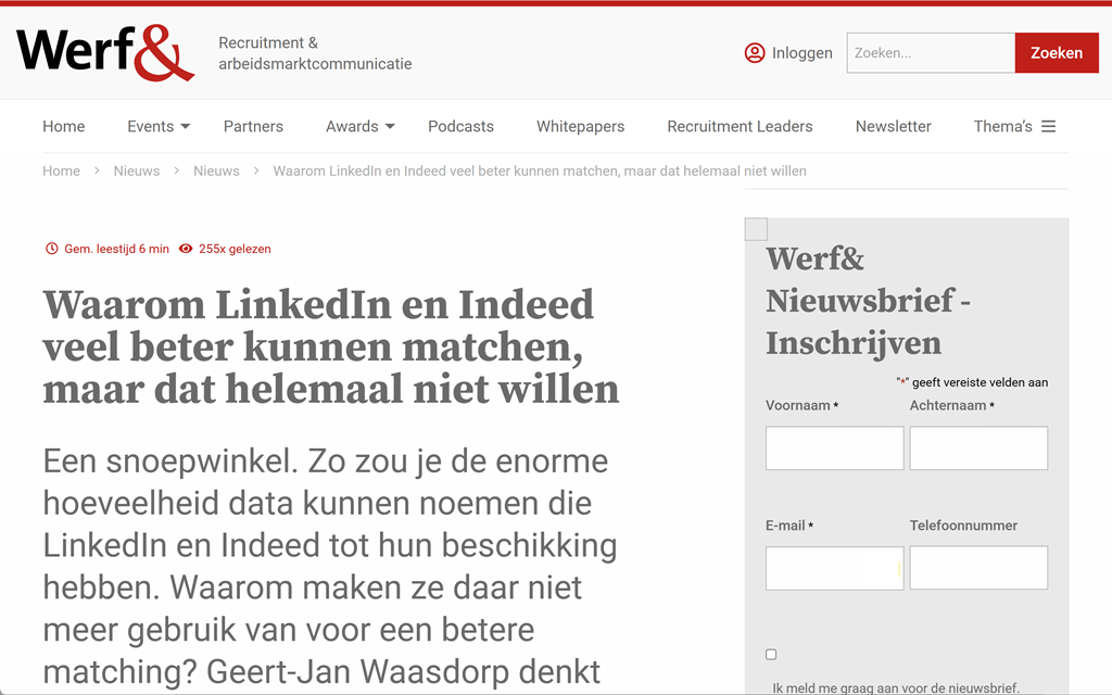 Waarom LinkedIn en Indeed veel beter kunnen matchen, maar dat helemaal niet willen – Werf&