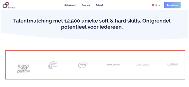 En ik heb er dit schermvoorbeeld van de homepage van 8vance bij gedaan, waar deze referenties te zien zijn: