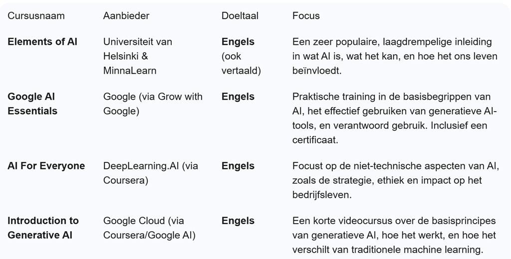 Ik heb AI ook maar even de vraag gesteld voor vergelijkbare Engelstalige cursussen met dit resultaat: