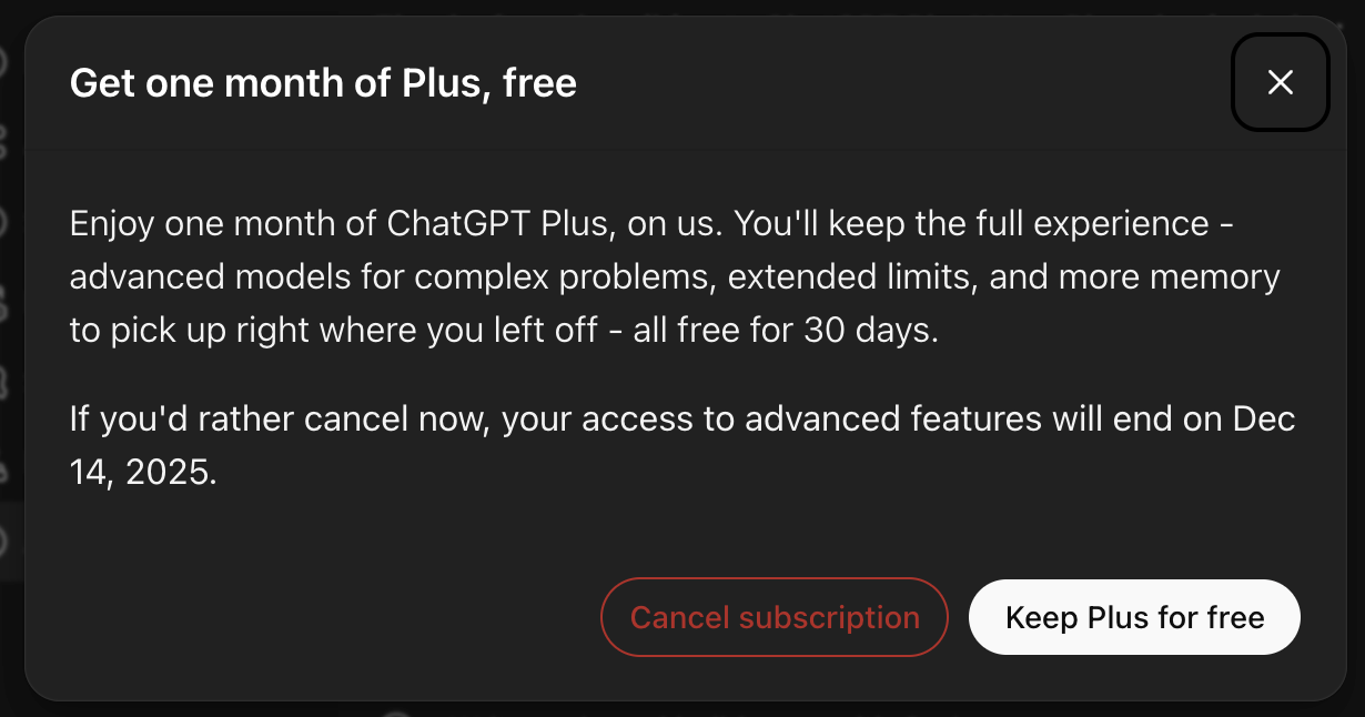 Gebruik je chat gtp plus en betaal je daarvoor?Zelfs in deze dure maand?Oké.Dat kan.Maar weet dat je het GRATISCH kunt gebruiken als je doet alsof je opzegt.Gerelateerde berichten: Hoe hoort het eigenlijk: lessen in etiquette voor recruitment sites. Aflevering 7: vacature-alert Hoe hoort het eigenlijk: lessen in etiquette voor recruitment sites. Aflevering 4: de (snel)zoekfunctie Hoe voorkom je het ontstaan van forever data? Hoe hoort het eigenlijk: lessen in etiquette voor recruitment sites. Aflevering 6: de herstelfunctie