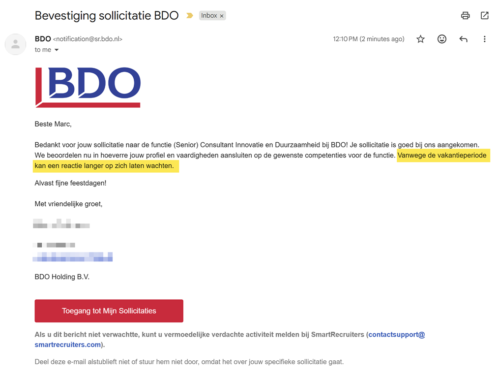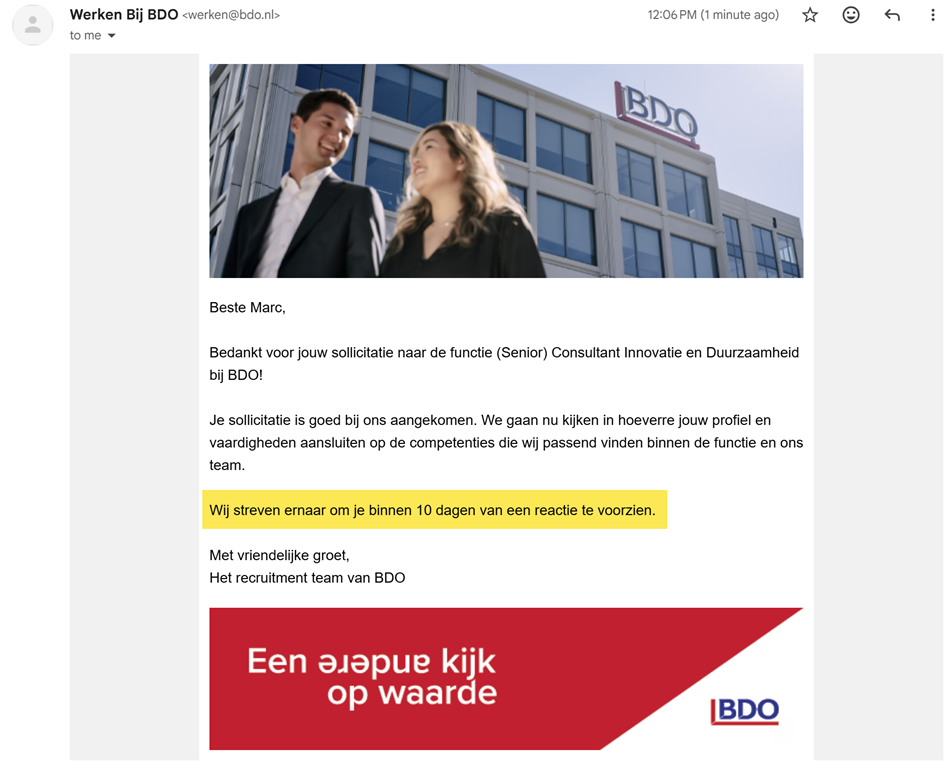 Automatische e-mail reactie op sollicitatie, 2 – Werken bij BDO