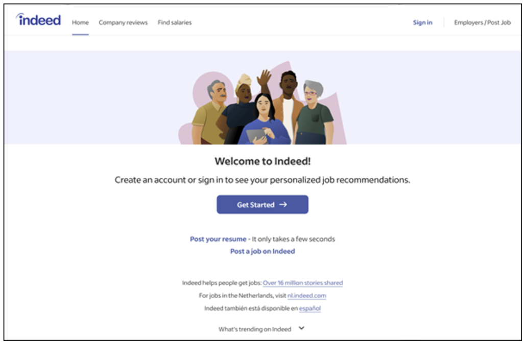 Ondertussen ziet de homepage van Indeed in de VS er zo uit:![]()