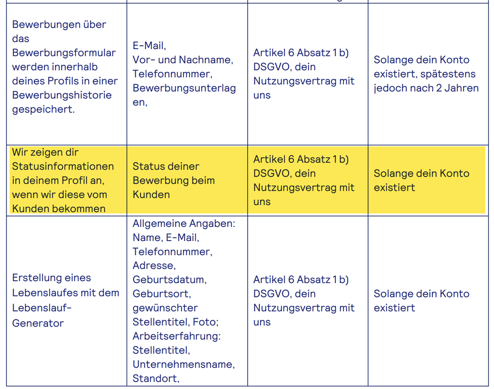 Stepstone.de Datenschutzerklärung, pagina 8: