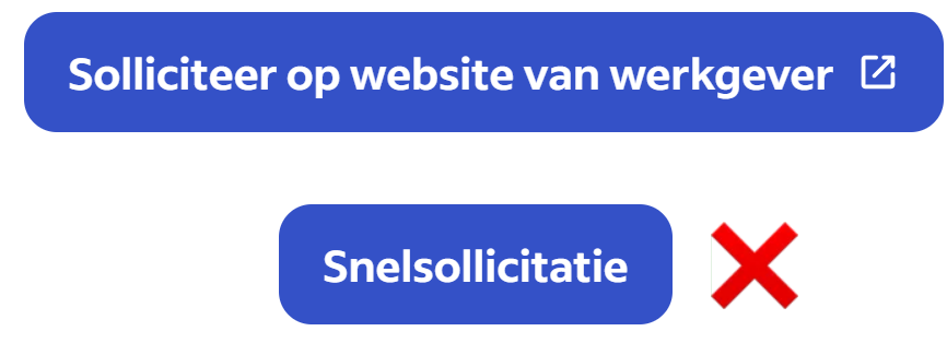 Klikken op de knop Solliciteer op de website van werkgever is de enige veilige optie (hoewel Indeed je nog altijd verplicht om een account aan te maken…). Staat er bij een vacature de knop Snelsollicitatie dan is dat jouw queue om niet via Indeed te solliciteren. Ga in plaats daarvan naar de site van de desbetreffende werkgever of intermediair en solliciteer daar op de desbetreffende vacature. En als je toch bezig bent, verwijder ook meteen je Indeed account.