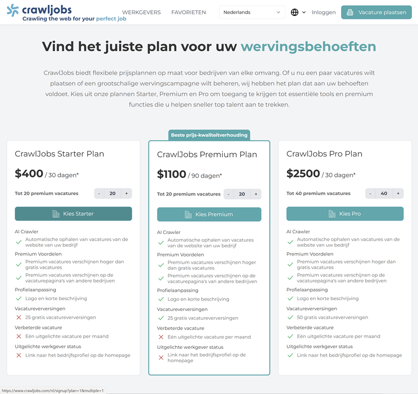 O ja, Crawljobs is niet gratis, maar dat had natuurlijk niemand verwacht. Oordeel zelf maar over de betaalbaarheid van de drie opties:![]()