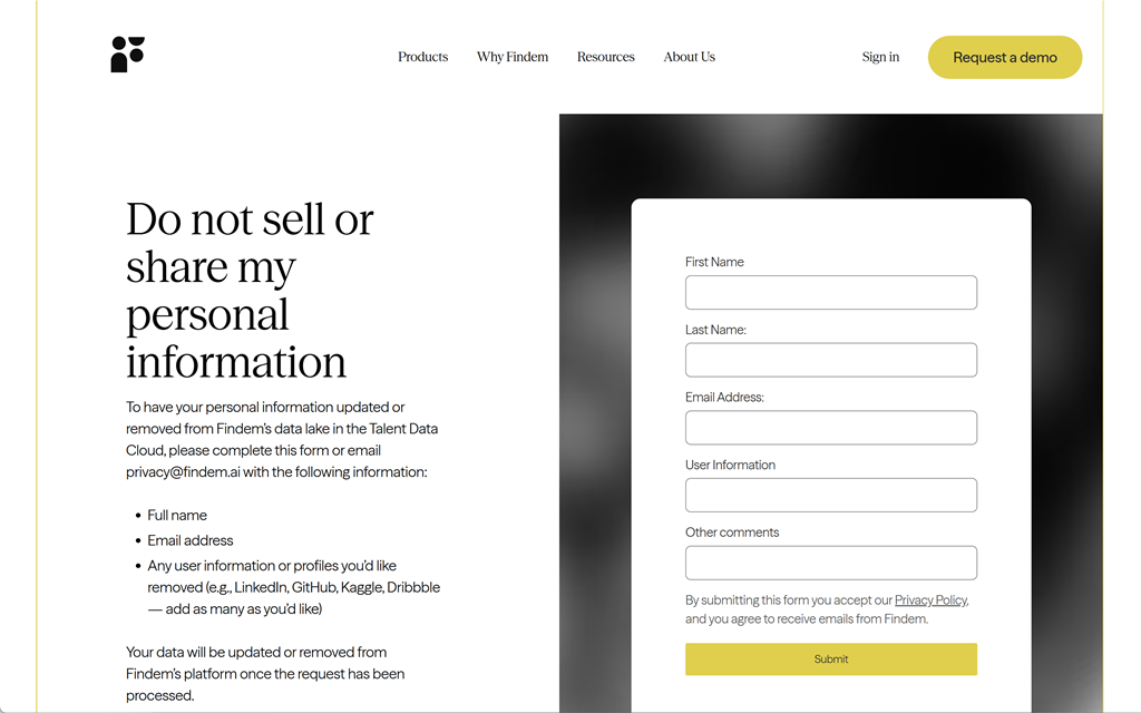 Do not sell or share my personal information – Findem