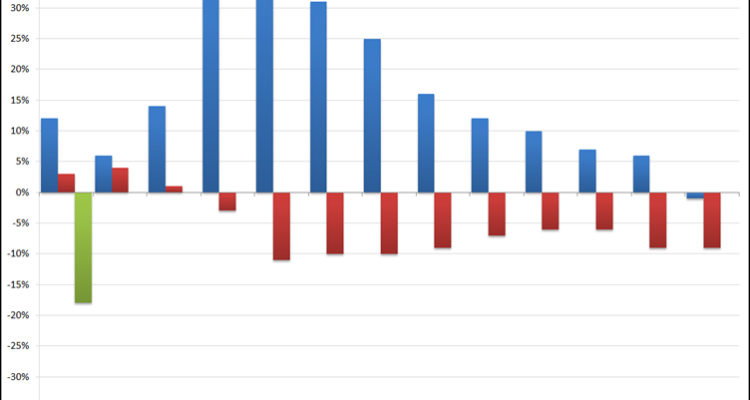 Een krimp van 5% is zeker niet schokkend te noemen, en in die zin zou je kunnen zeggen dat er geen paniek in de tent hoeft te zijn. Maar dan oordeel je toch iets te snel. Want het is de voortgaande krimp die nu al voor de 44ste periode (4 weken = 1 periode) wordt genoteerd die je zo droef maakt. Zo lang zonder een positief (boven de 0%) resultaat is niet bepaald motiverend, en toch moet er worden doorgegaan.