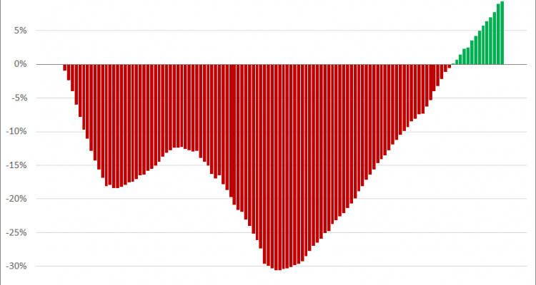 Misère/jubel index, (2008 = 0%), januari 2008 – september 2018