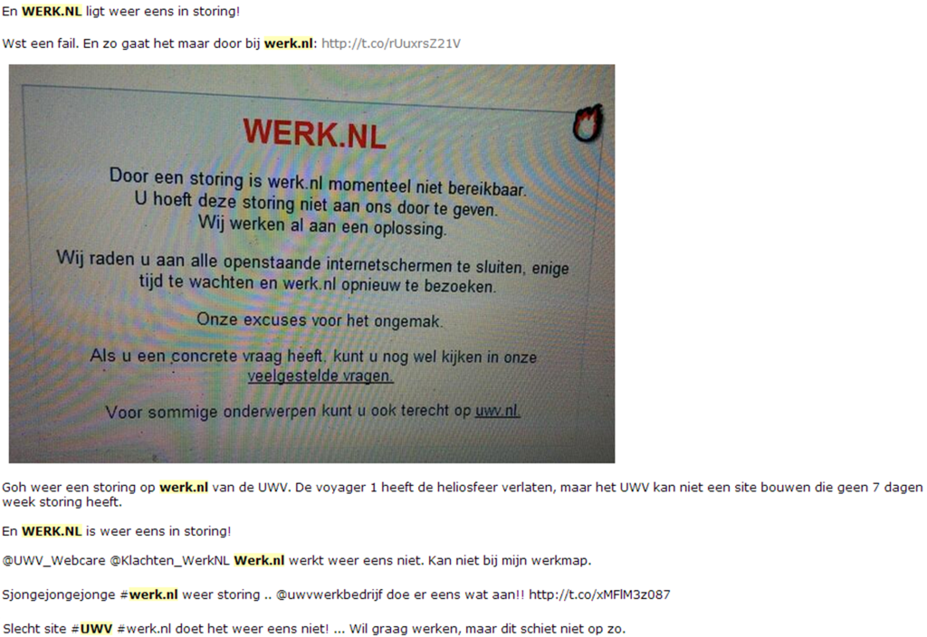 Volgens Fred Paling (lid RvB UWV, portefeuillehouder Werk.nl) is er met Werk.nl niets aan de hand: [Werk.nl] draait. Zeker de afgelopen maanden draait het prima. Volgens André Timmermans (directeur van de divisie WERkbedrijf bij UWV) is het met de beschikbaarheid van Werk.nl uitstekend gesteld: Sinds begin december hebben we in totaal 45 minuten storing gehad. Dat is 45 minuten te veel, maar het is wel beter dan het was. En ook volgens minister Lodewijk Asscher is er niet aan de hand. Want uit de metingen van UWV blijkt dat de beschikbaarheid van werk.nl binnen de service window in het afgelopen jaar in 10 maanden rond of boven de 99% lag.