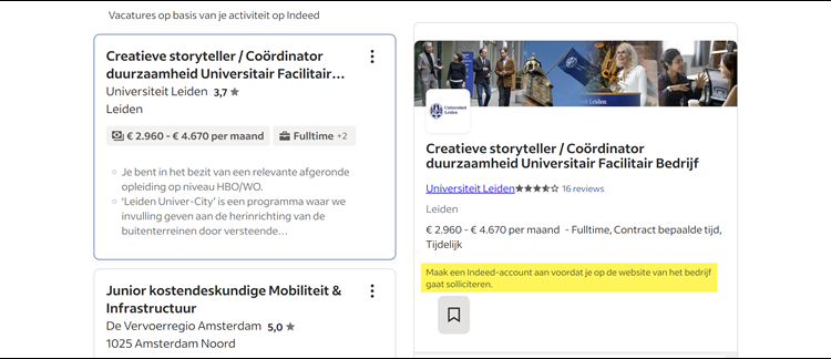 Indeed experimenteert al langere tijd met een data grab (het aftroggelen van persoonsgegevens) van bezoekers/werkzoekers. Zo moeten bezoekers tegenwoordig een account aanmaken voordat ze een vacature alert (job alert) kunnen aanmaken. En moeten bezoekers al langere tijd zich registreren als ze via Indeed willen solliciteren. Indeed wil weten wie je bent, vanwege omzet. Dit is enshittification en heeft “downstream” (in het vervolgraject) grote gevolgen voor de privacy van werkzoekers/sollicitanten, maar daar heb ik al eerder over geschreven.